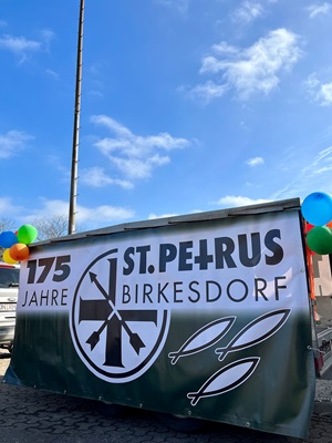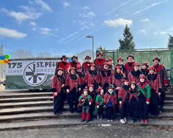 Unsere Altschützen als „Clowns“ und Jungschützen als „Kölsche Prinz und Prinzessin“ beim Rosenmontagszug in Birkesdorf bei traumhaften Wetterbedingungen.